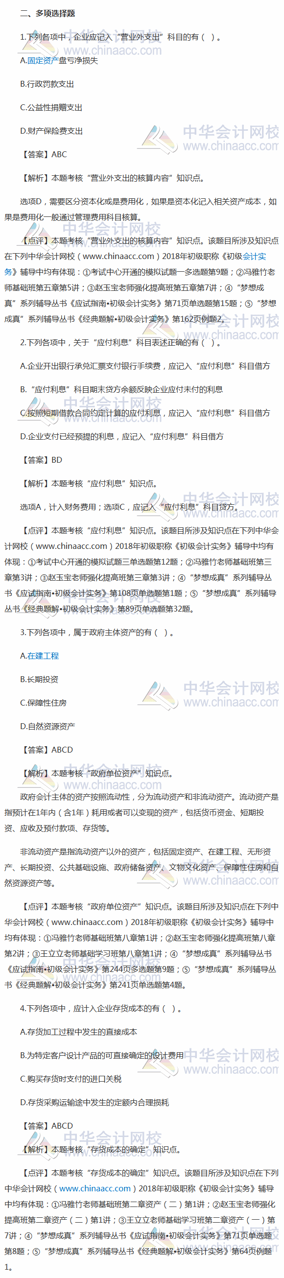 注:以上题目来源于正保会计网校论坛学员,网校整理发布并提供参考答案及解析,初级会计职称考试是随机抽题,以上题目顺序与真实考试有差异。 |